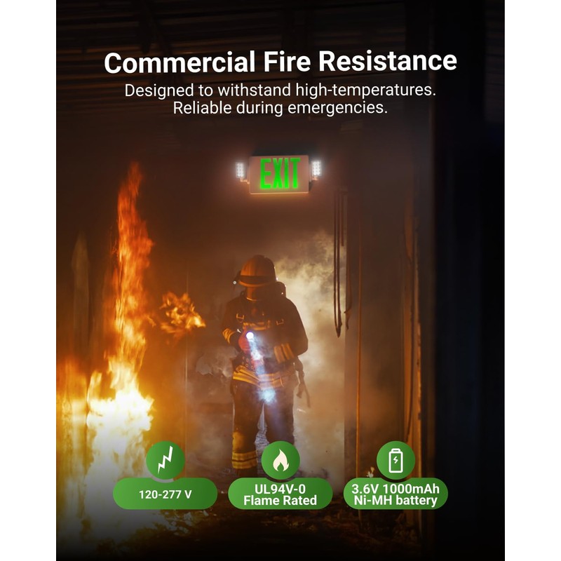 - ✅ COMMERCIAL GRADE - Our emergency exit sign is designed for safety needs at offices, schools, retail spaces, and everything in between. Specifications: 120-277V, Test Switch, Backup Battery, ABS Fire Resistant Plastic, Double Sided, Dual Mounting. Certifications: UL Listed.