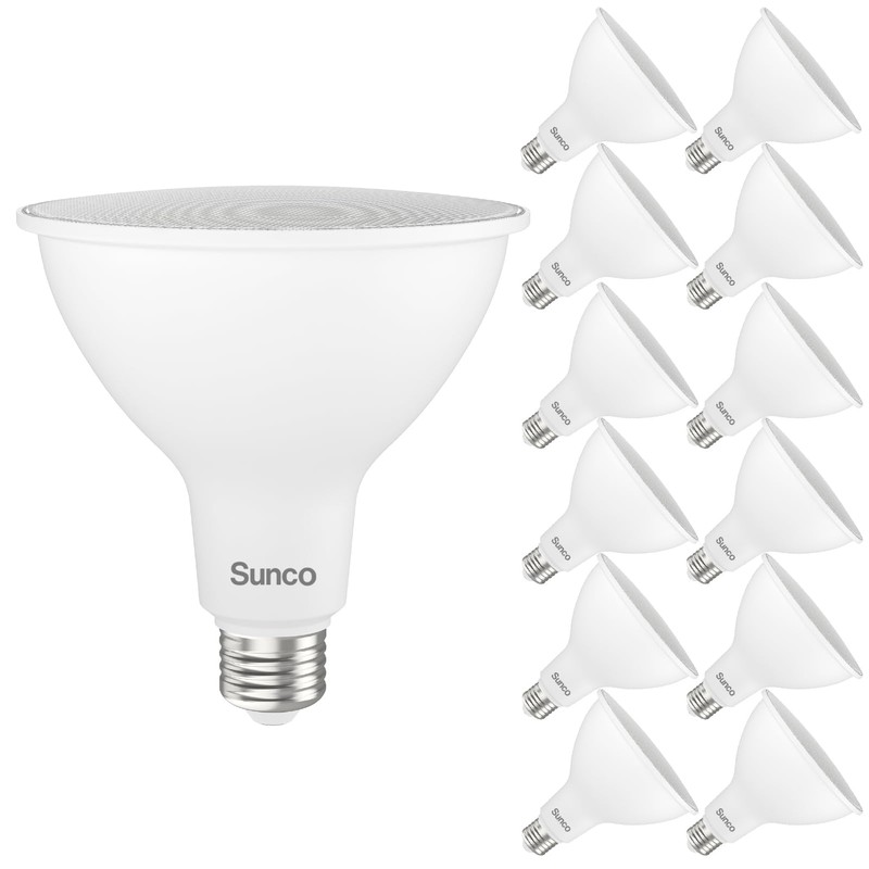 Sunco Lighting 12 Pack 1800 Lumens Outdoor LED Flood Light Waterproof PAR38 LED Bulb, Dimmable, 15W=150W, 3000K Warm White, E26 Base, UL Listed