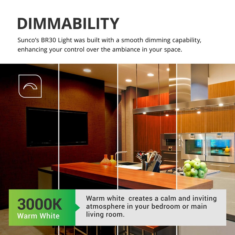 Sunco Lighting BR30 LED Bulbs, Indoor Flood Lights 11W Equivalent 65W, 3000K Warm White, 850 LM, E26 Base, 25,000 Lifetime Hours, Interior Dimmable Recessed Can Light Bulbs - UL & Energy Star 6 Pack