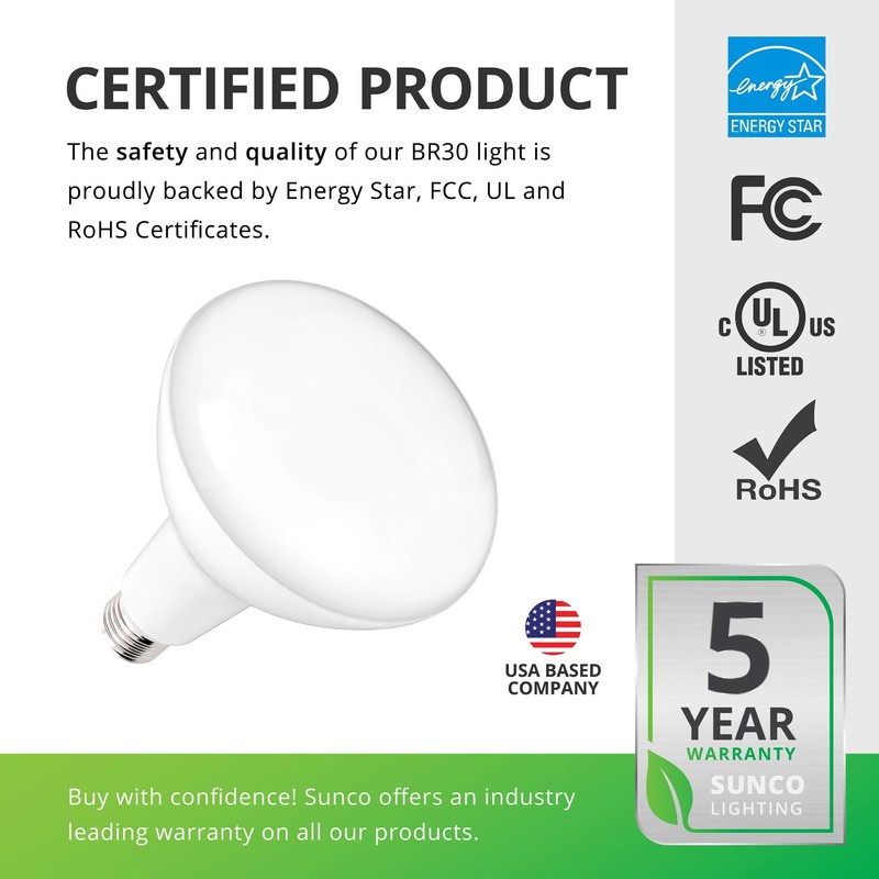 - ✅ UL CERTIFIED & ENERGY STAR LISTED - We uphold the highest standards for all our products by testing each product for optimal performance and safety. Our BR30 LED bulbs provide instant on, bright light with no buzzing or flickering for maximum eye comfort.
