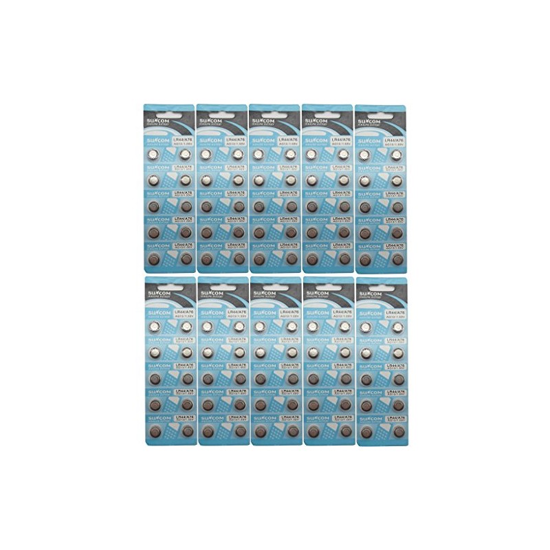 SUNCOM (100 pcs) AG13 Alkaline 1.5V Button Cell Battery Single Use LR44 A76 G13R S76E MS76H MS76 Watch Toys Remotes Cameras