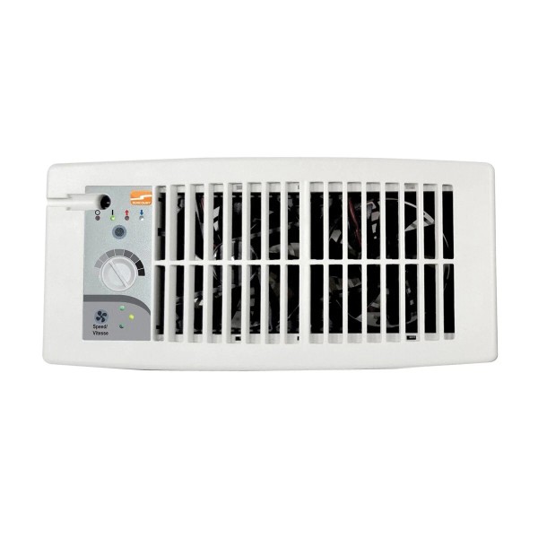 Suncourt Flush Fit Register Booster quietly boosts heated or cooled air automatically to improve circulation and comfort. Our new improved "Smart Technology" works automatically with forced air systems without requiring a seasonal adjustment. It has 5 fan speeds with dual fans to pull extra air out of weak registers, boosting airflow up to 85%. It is a simple, energy efficient, and safe solution for rooms that are too hot or too cold. Fits a standard 4" X 10" register. Can be installed in floor or wall registers. (wall registers require optional wall kit) Assembled in the USA
