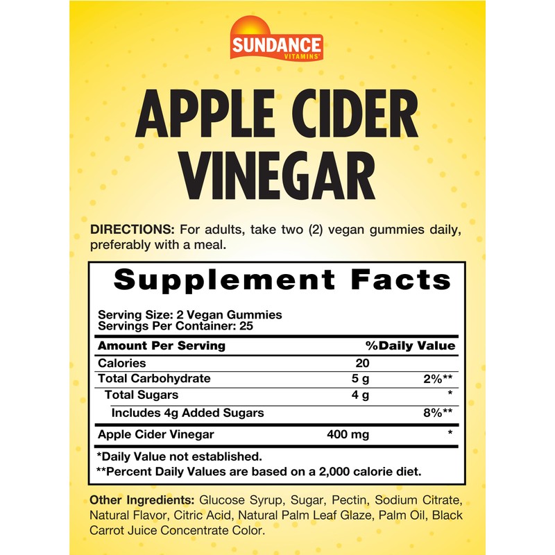 Sundance Apple Cider Vinegar Gummies | 50 Count | Apple Flavor | Vegan, Non-G...