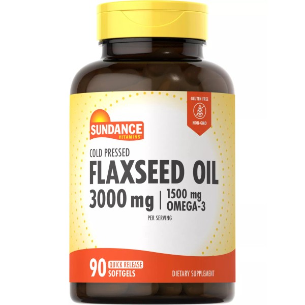 Sundance Flaxseed Oil Softgels 3000mg | 90 Count | Omega 3 | Cold Pressed | by Sundance
