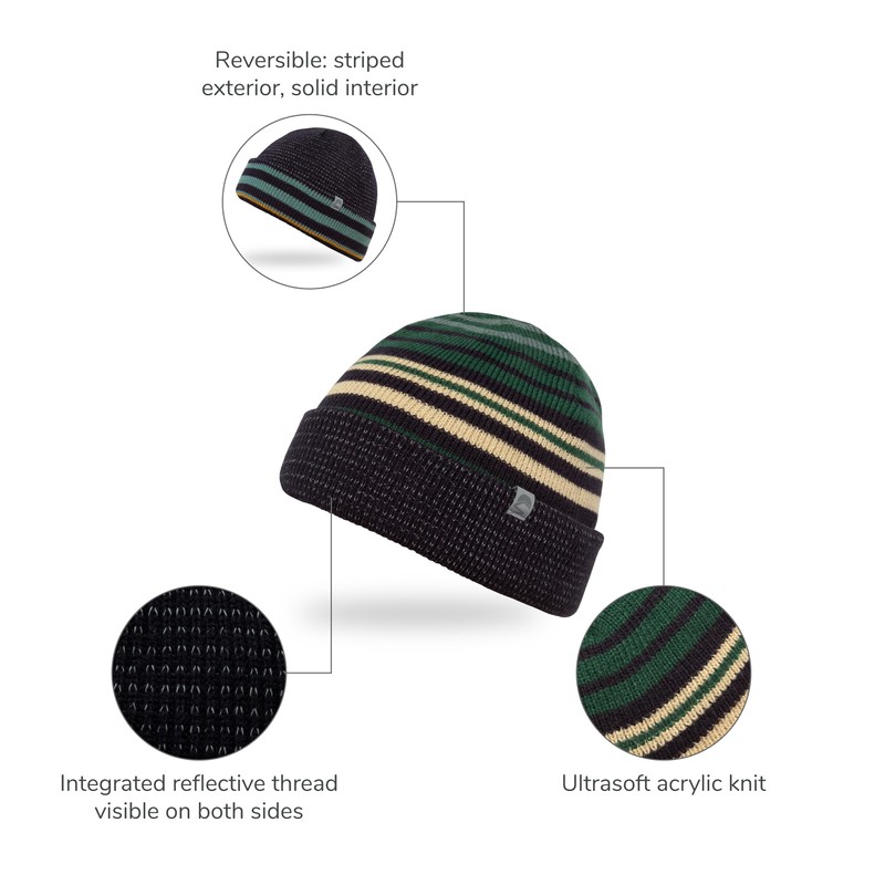 Sunday Afternoons Myriad Reflective Beanie, Raisin Stripes, One Size