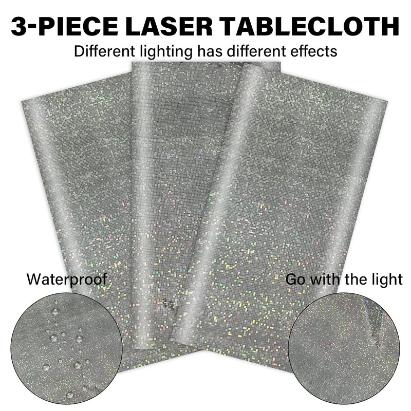 sundee 3 Pack Laser Plastic Tablecloth Disposable Laser Rectangular Tablecloth Holographic Aluminum Foil Tablecloth Rainbow Party Decoration Birthday Wedding Christmas 54 x 108 inches (Silver)