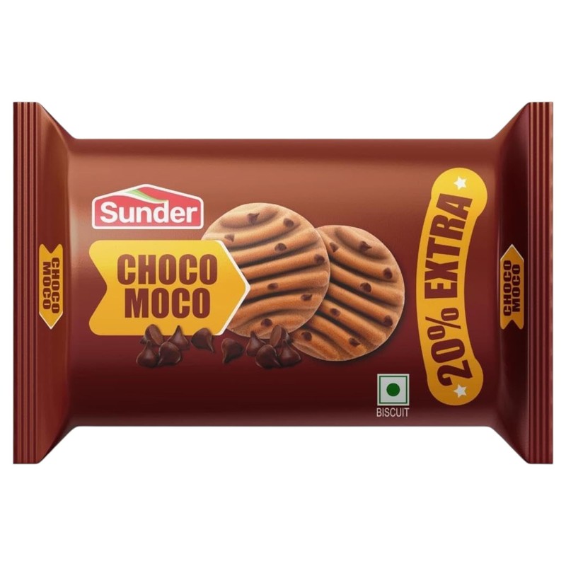 Sunder Choco Moco Biscuits – 12 Pieces Per Pack (4 Pack, Total 48 Cookies) Indian Vegan Chocolate Cookies, Crunchy & Delicious