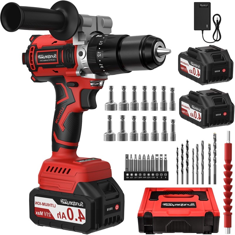 - SundpeyPRO cordless hammer drill comes with 2 × 4000mah li-ion battery and charger and drill bits