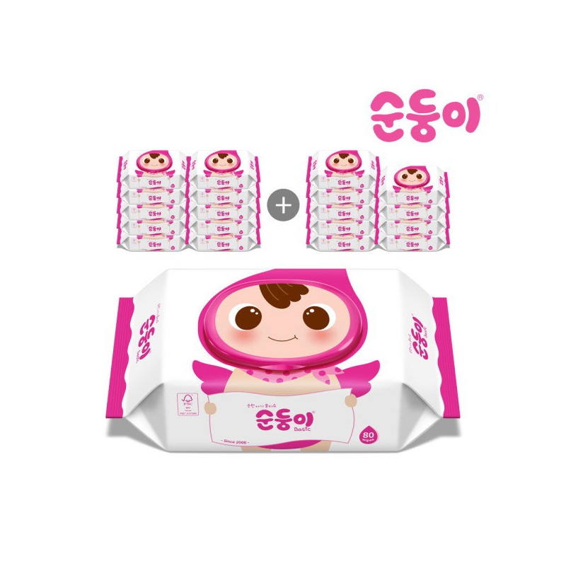 Sundungi S-BC/Basic Wet Tissue Cap Type 80 Sheets 20 Packs / 순둥이 S-BC/베이직 물티슈 캡형 80매 20팩