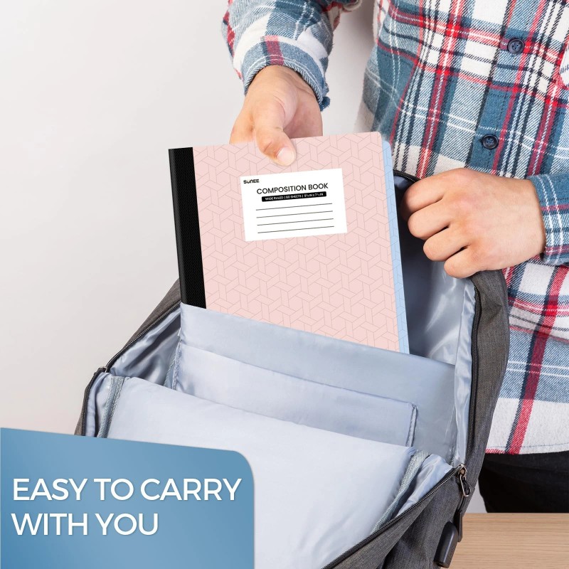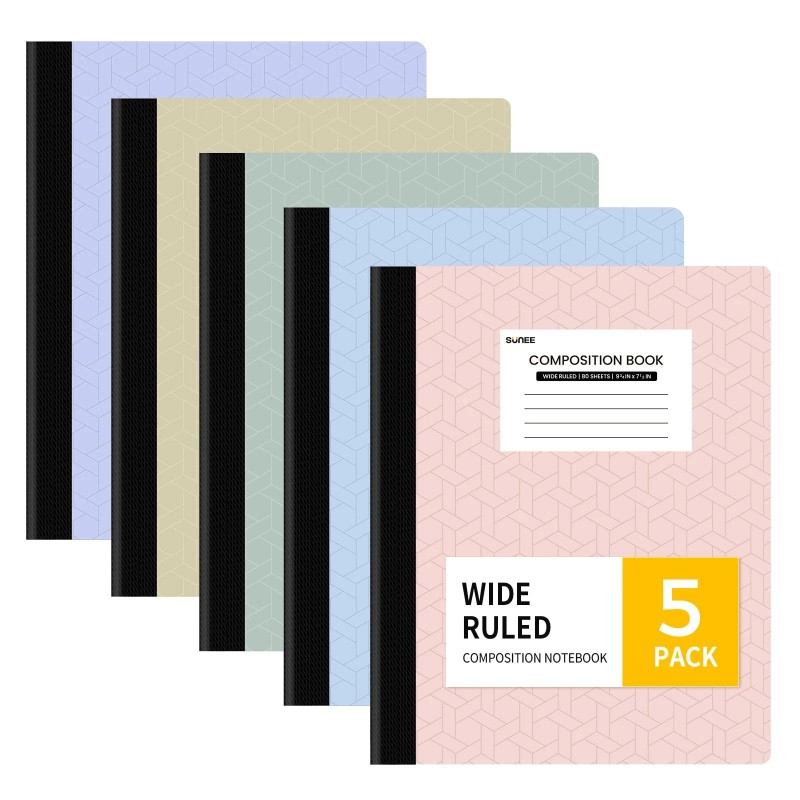 SUNEE Composition Notebook, Wide Ruled Paper, 5 Pack, 9-3/4" x 7-1/2", 80 She...
