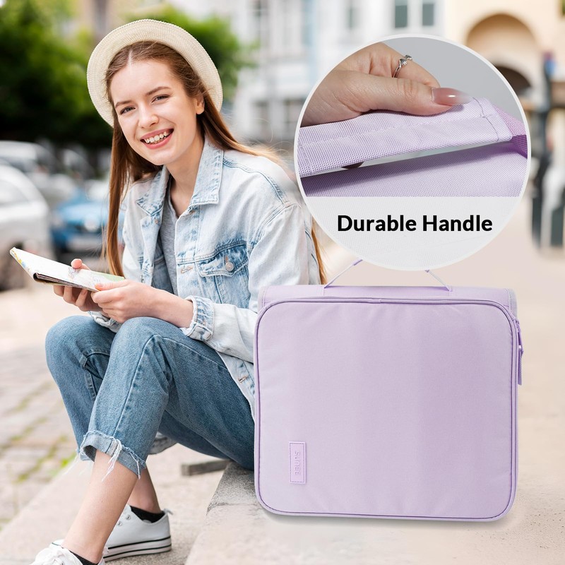 SUNEE Zippered Binder Bag with Handle, 2-Inch 3-Ring O-Ring, 500-Sheet Capacity, Includes Zip Pocket, 5-Tab Expanding File Folder, Multi-Pocket Organizer Binder for Middle School, Lavender Purple