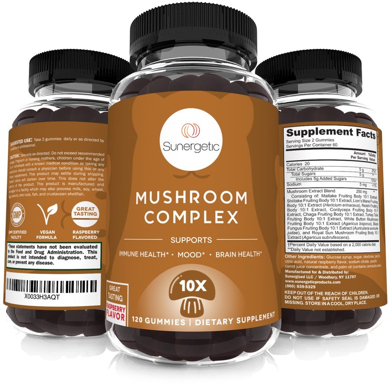 - SATISFACTION: Our Mushroom Complex is made in the USA with globally sourced ingredients in an NSF-certified facility that adheres to Good Manufacturing Practices. At Sunergetic, we are sure you will love our Mushroom Gummies Complex.
