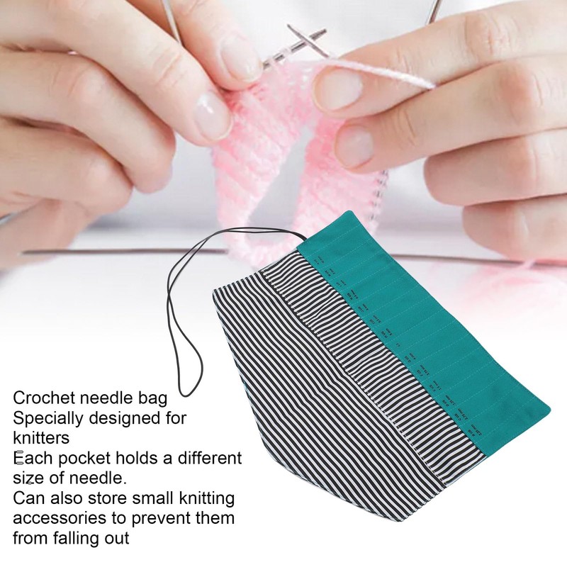 - PROFESSIONAL DESIGN: The Crochet needle bag is specially designed for knitters, each pocket can store knitting needles of different sizes, and can also store small knitting accessories to prevent dropping.Specially designed pockets to securely store varied size knitting needles and tiny knitting essentials – prevents items from dropping.