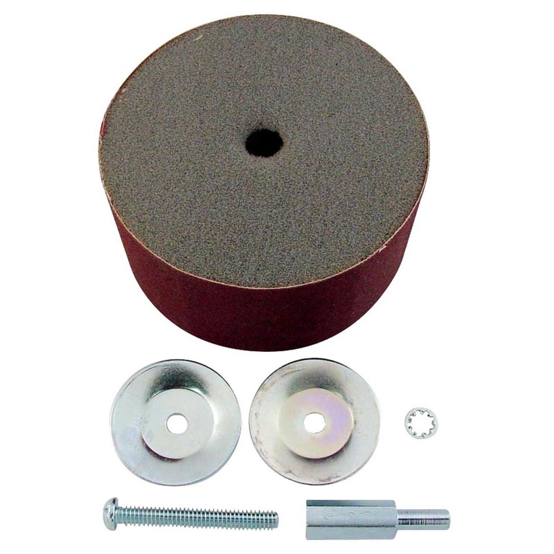 Dedicated arbor (0.2 inch (6 mm) shaft); Grit size: 120 (1 piece); Number of rotations: 3.000 rpm; Sponge roller size: 3.9 inches (100 mm) diameter x 2.0 inches (50 mm) thick; Replacement belt material: A material.