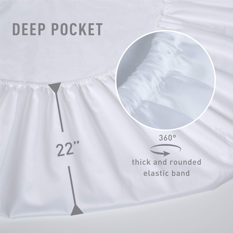 - DEEP POCKET & PERFECT FIT: Perfect thick and full-length rounded ELASTIC with DEEP POCKETS are generously sized to fit your mattress. -QUEEN size: 22" DEEP POCKET