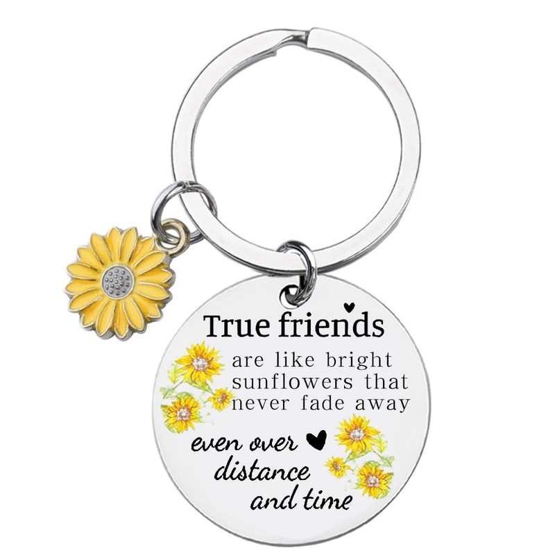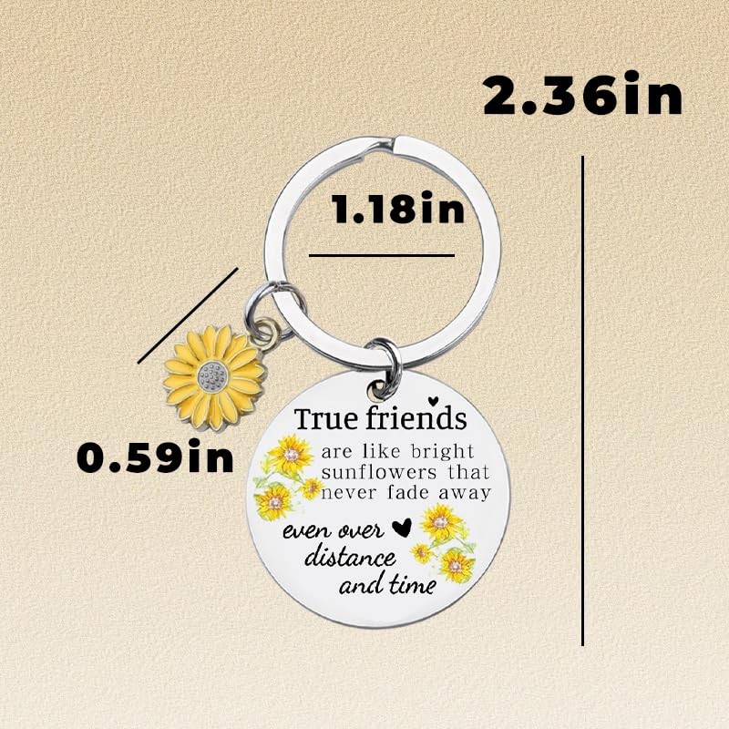 - Best Friend Birthday Gifts for Women Girls Bestie: This true friends keychain is engraved with True friends are like bright sunflowers that never fade away, even over distance and time, so, it's not just a simple engraved keychain for friends, but also a best long distance friendship gift for friends wemen men, going moving away gifts for friends women men