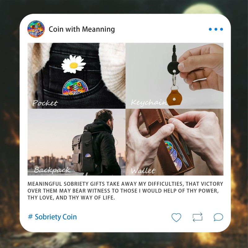- 🛍️Local Shop: We're a homegrown American shop specializing in original handmade sobriety coins. Each aa coin is meticulously crafted with intricate 3D carving by skilled artisans. We regularly participate in sobriety anniversary events across the country, collaborating with sponsors to aid those on their sobriety journey. You'll often find our aa coins featured at numerous offline gatherings. Your support in championing the sobriety culture means the world to us