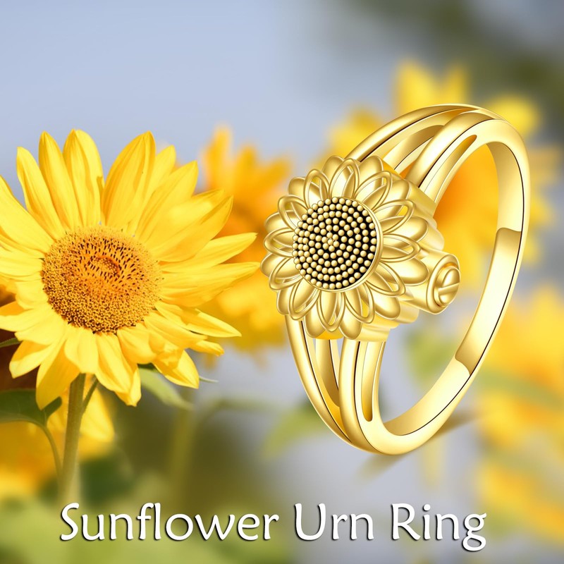 Sunflower Urn Rings for Women Sterling Silver You Are My Sunshine Flower Ring Jewelry Gift Rings for Ashes of Loved Ones