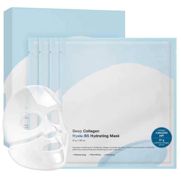 The mask provides deep hydration, thanks to its collagen and hyaluronic acid composition. It's designed to soothe overheated skin, making it a go-to for those seeking Korean skincare benefits. The set of four ensures you have enough for regular use, enhancing your skincare regimen effectively.