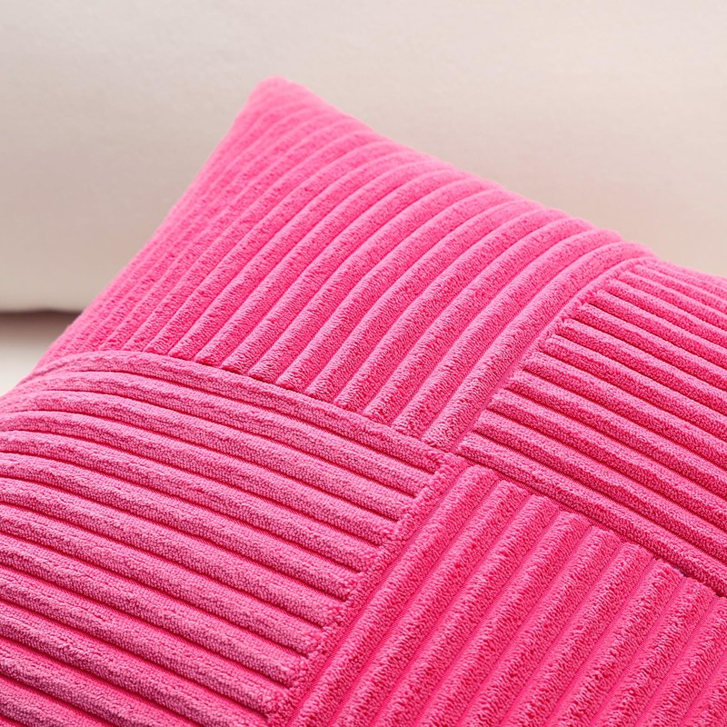 Sungeek Set of 1 Decorative Cushion Cover 30 x 50cm Soft Corduroy Striped Cross Patchwork Textured Pillow Covers Solid Lumbar Throw Pillow Cases for Sofa Bed Patio 12x20 Inch, Hot Pink