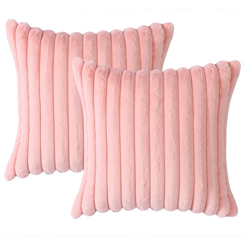 - Material: Faux rabbit fur stripe front, Velvet back, smooth and soft to the touch. The fluffy cushion cover is super cozy on both sides