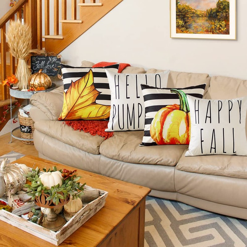 - Ideal home decoration – perfect indoor and outdoor decoration in autumn and Thanksgiving. 4 different autumn patterns ensure that the cushion covers perfectly match home decoration and easily match different home styles. Suitable for sofa, couch, chair, bed, car, tent, seat, bench and other furniture. Great decoration for living room, bedroom, garden, farmhouse, patio, balcony, bedroom, kitchen, office, cafe, party, picnic, wedding, etc.