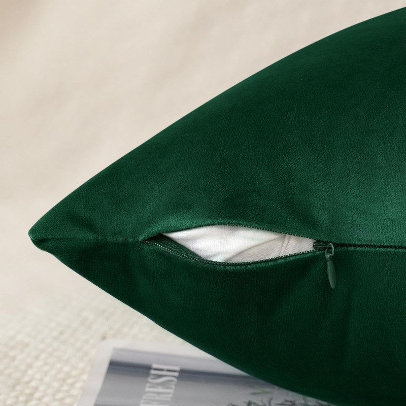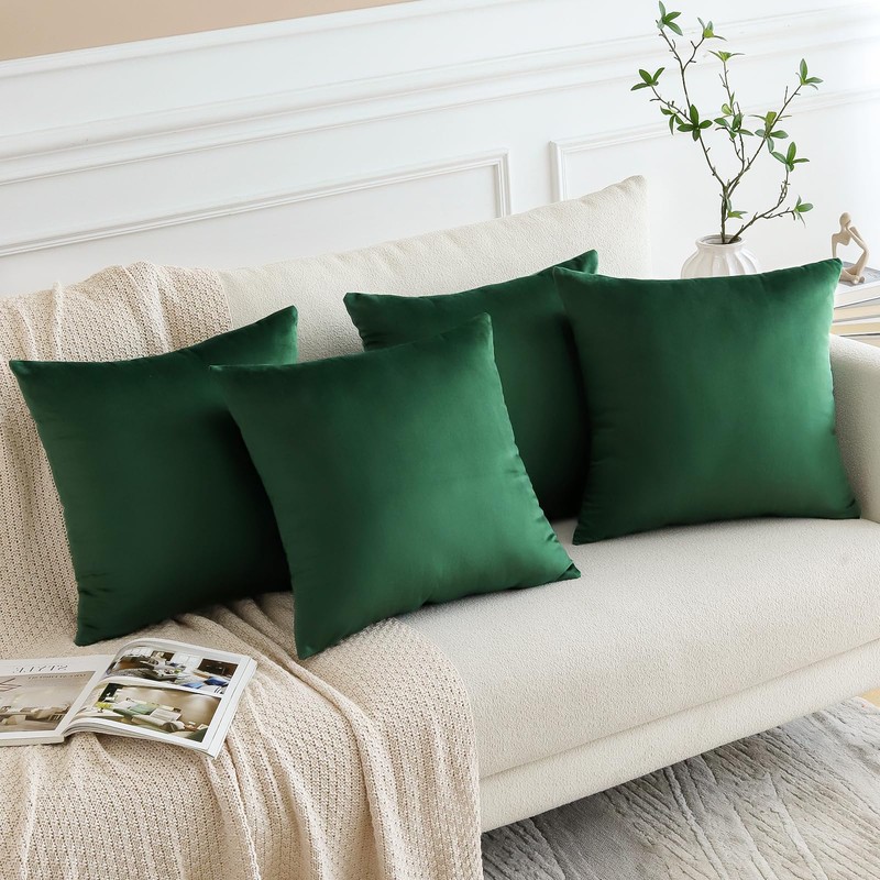 Sungeek Set of 4 Decorative Cushion Covers Solid Soft Velvet Pillow Covers with Invisible Zipper Square Throw Pillow Cases for Sofa Car Patio Bedroom Living Room 40x40cm Dark Green