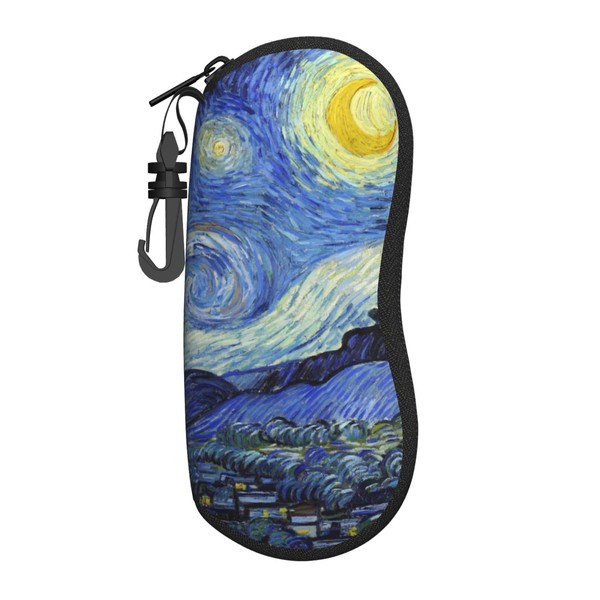Sunglasses Soft Case Ultra Light Neoprene Zipper Eyeglass Case With Belt Clip (Van Gogh - Starry Night)