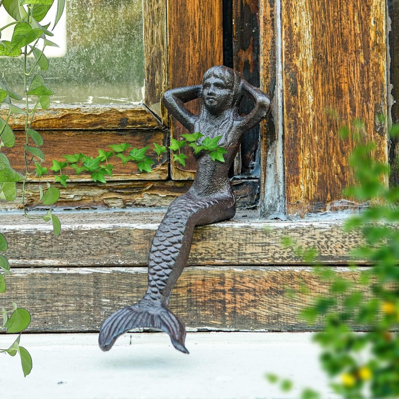 Sungmor Heavy Duty Cast Iron Mermaid Statue - 26CM Tall Sitting Mermaid Figure Ornament - Great Home & Garden Sculpture for Decorate Swimming Pool/Pond/Planter Stands/Book Shelf/Corner Table