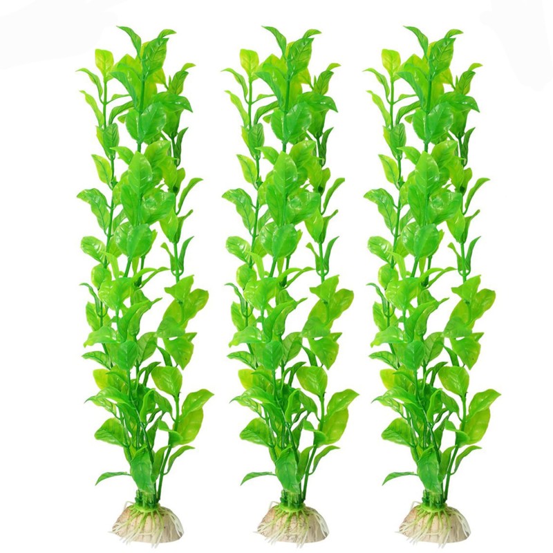 - For Your Pet’s Privacy --- Your fish will enjoy the encouragement that these plants provide. They can swim and hide through the swaying leaves of this artificial water plant. The soft silky leaves will be easy on your fish fins. Add this set of leafy artificial vegetation to create an amazing underwater world. It measures around 10.2 inches high, with the base about 1 inch and spread the width of about 4.7 inches.