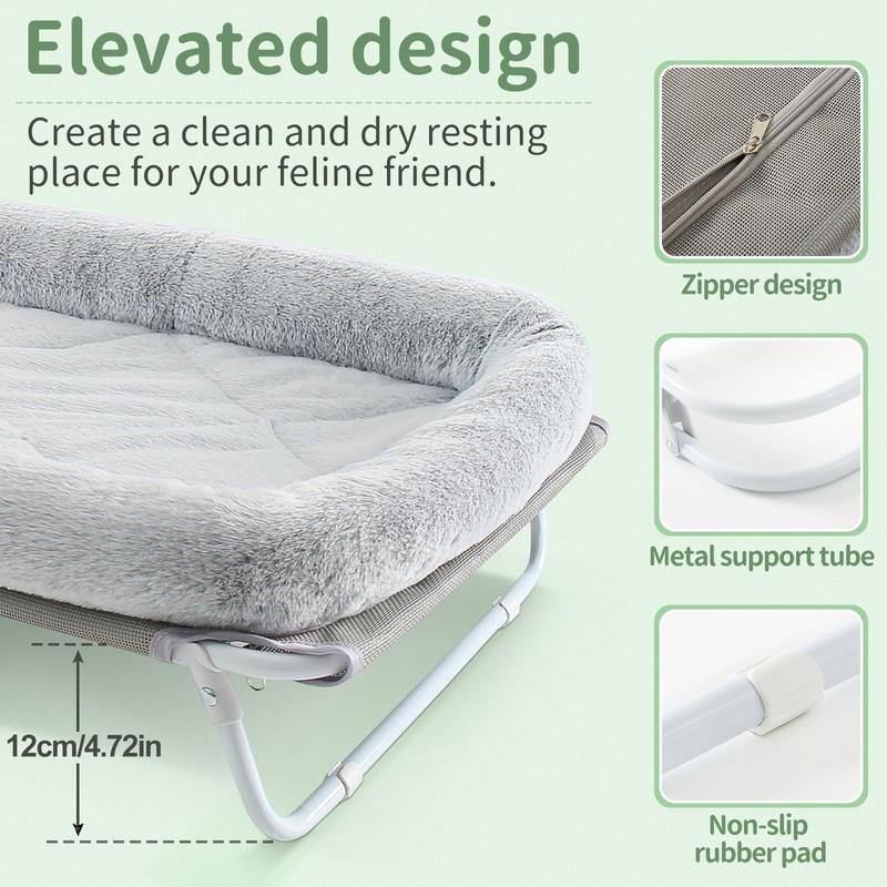 - Elevated Design: Raised by 4.72 in from the ground, our indoor kitten cots with stand keeps your cat away from the ash and dirt on the floor. The outdoor raised pet beds also promotes better air circulation, creating a clean and dry place for your pet to relax and sleep soundly
