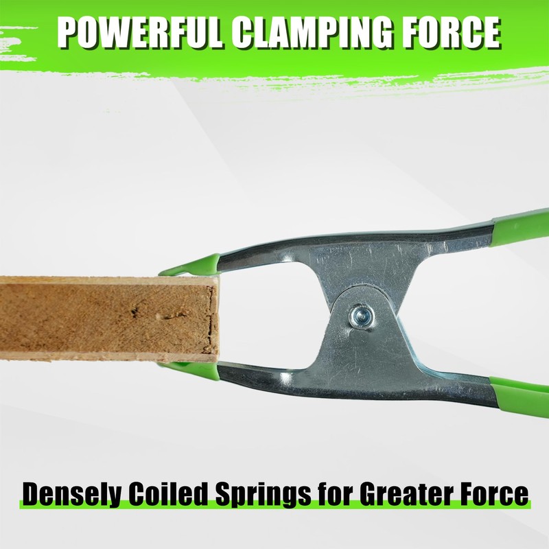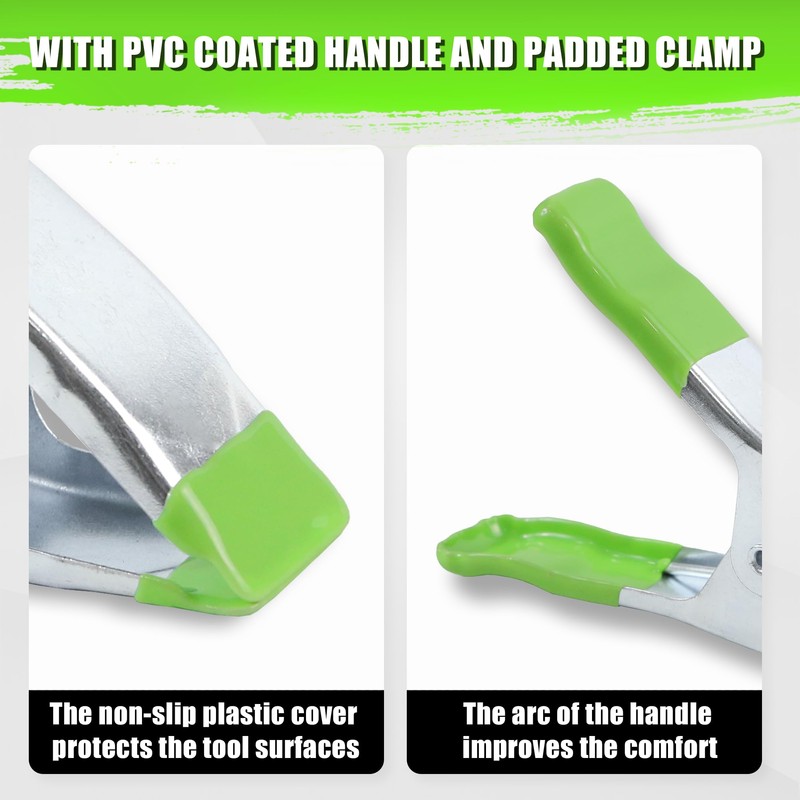 - HEAVY DUTY SPRING METAL CLAMPS: Spring clip is made of nickel-plated steel, durable and anti-rust. Clamps Set with Protected Rubber Handles and Tips, the improves the comfort and protects the tool surface