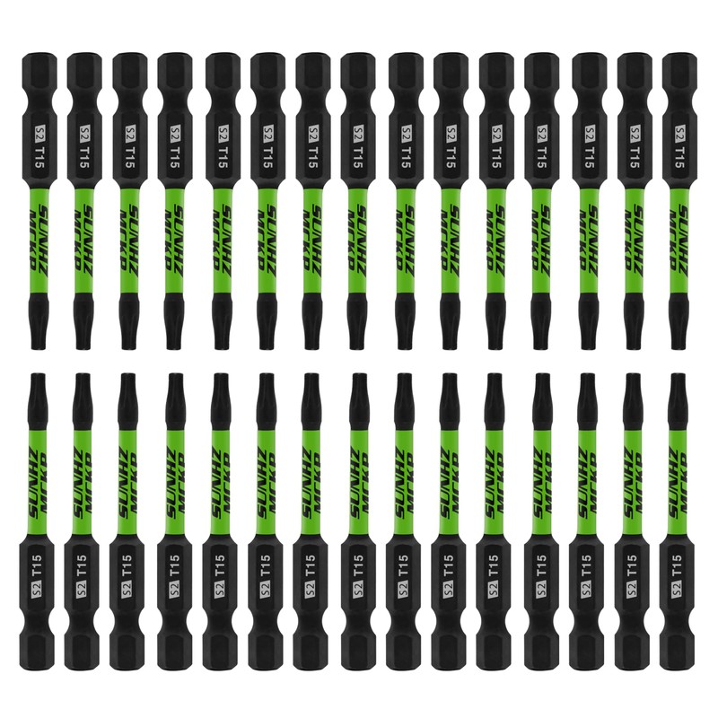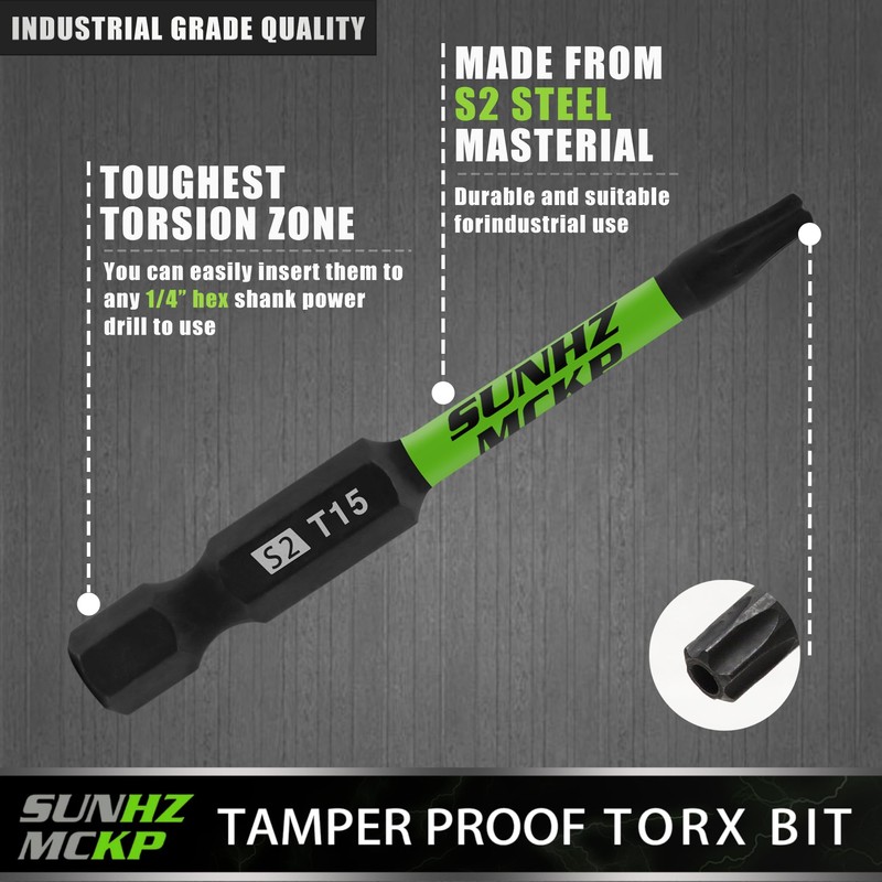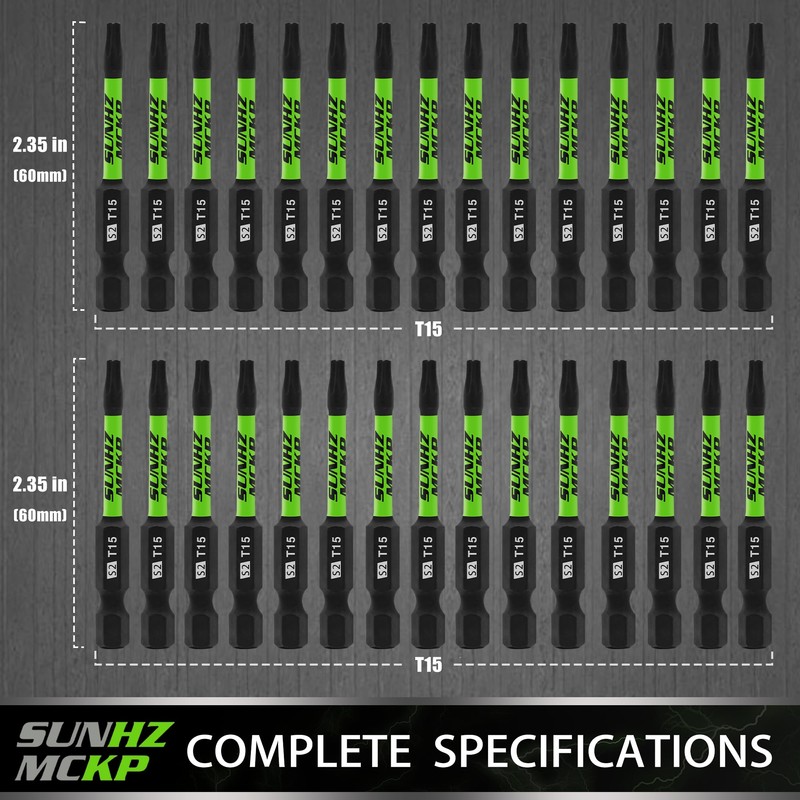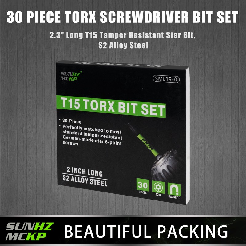 - IMPACT TOUGH BITS: Torx set: This set includes 30 pieces professional grade impact 2.3 inch T15 torx bit head, Each drill bit is labeled with its torx bit size, which can be quickly identified, holes in the center in each bit causes it to be tamper resistance.