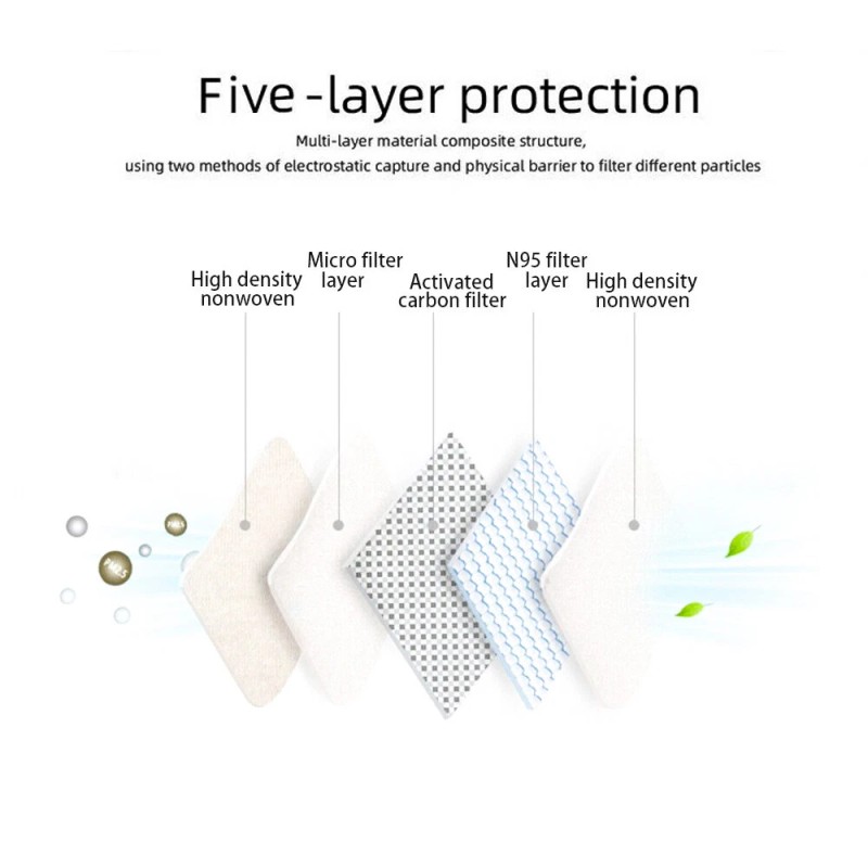 KN95 mask with filter. Filters at least 95% of airborne particles (0.3 microns) particles.