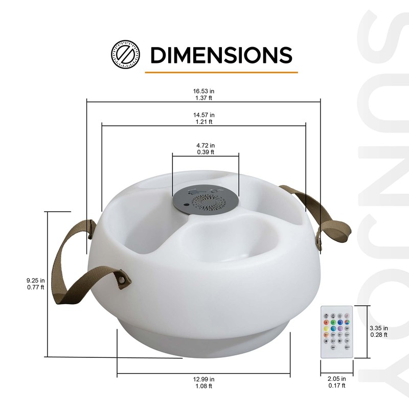 Sunjoy Floating Drink Holder with Ip66 Waterproof Bluetooth Speaker, Floating Pool Beverage Tub, Portable Bluetooth 5.0 Pool Speaker with RGB Light and Remote Controller