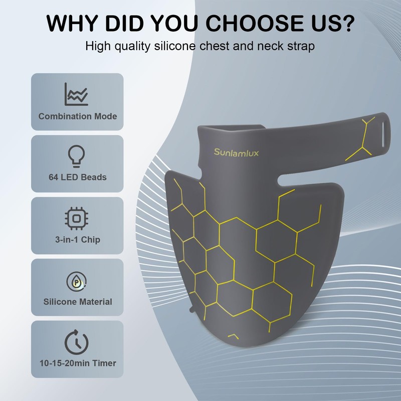 - Professional LED Neck: Sunlamlux LED neck uses 64 advanced modules with 128 visible red and 64 invisible near-infrared chips for professional help