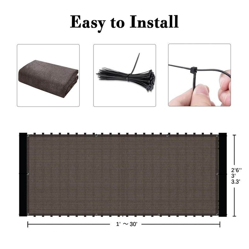 SUNLAX Brown Balcony Privacy Screen Fence 2'6''x10' Heavy Duty High Quality Chain Mesh Fence Screen Professional Outdoor Shade Mesh with Aluminum Ring Holes and Ties, Blocking Rate 90%, Breathable, Resistant to Bad Weather Resistance