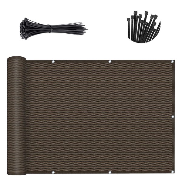 SUNLAX 2'6''x10' Brown Balcony Privacy Screen Fence Windscreen Cover Fabric Shade Netting Mesh Cloth with Grommets UV Protection for Patio, Backyard, Porch, Railing Shield 90%