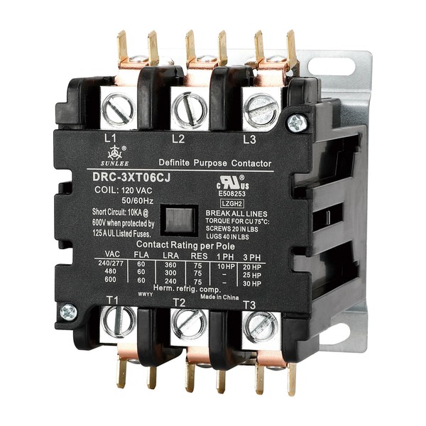 SUNLEE 60 Amp 75 RES 3 Pole 120v coil SunLee DP Contactor A2L Compliant UL Recognized & Approved for UL 60335 HVAC Contactor 42EF35AF equivalent
