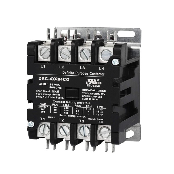 Sunlee controls DEFINITE PURPOSE CONTACTOR 4 Pole 40 Amp 50 RES 120V Coil fits Siemens 42CF25AF Lighting Heating Refrigeration Contactor