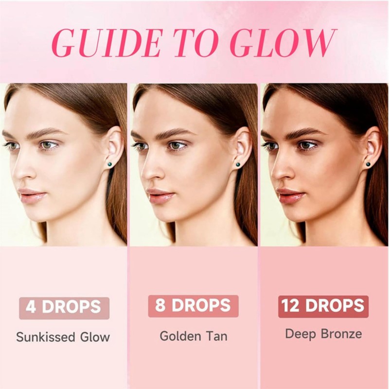 - Say Goodbye to UV Damage:Get a natural look with our face tanning drops. Our tan accelerator for sun lets you achieve the perfect skin tone without harmful UV rays. Simply add more self tanning drops to get an even darker tan and face tanner give your complexion a flawless, radiant glow