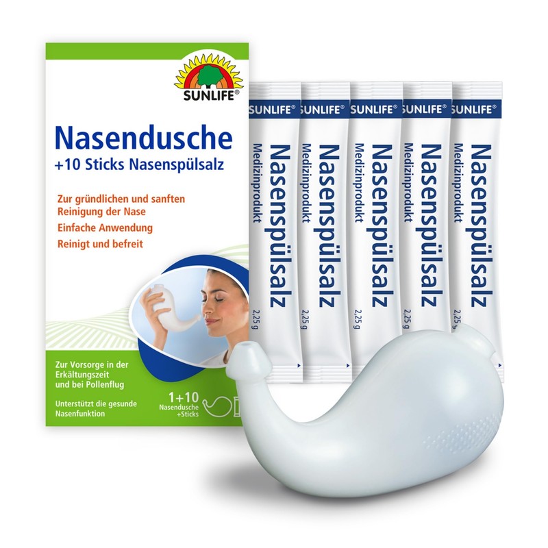- Breathe better: Our Sunlife nasal rinse with saline solution moisturises the nose soothingly and ensures gentle cleaning and care of the nasal mucous membranes, so you can breathe deeply again.