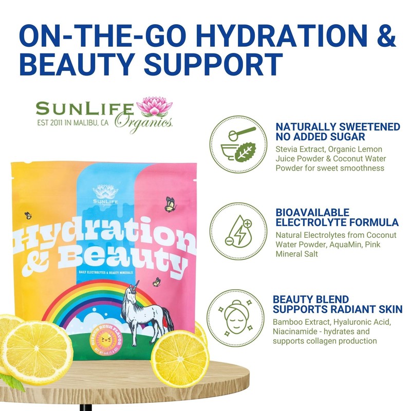 SunLife Organics Hydration & Beauty Powder - Citrus Rush - Electrolyte Drink Mix | Daily Vitamins and Minerals - Magnesium, Vitamin C, and Niacin | Non-GMO | 60 Servings