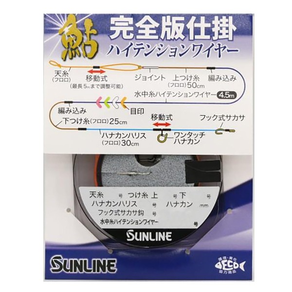 • Quantity: 1 set (equipped parts: Fluoro yarn + Fluoro top line + submersible thread + high tension wire + marking + Fluoro underwire + Hanakan Fluoro Harris + Moveable one-touch Hanakan + Hook-type Sakasa Hook)