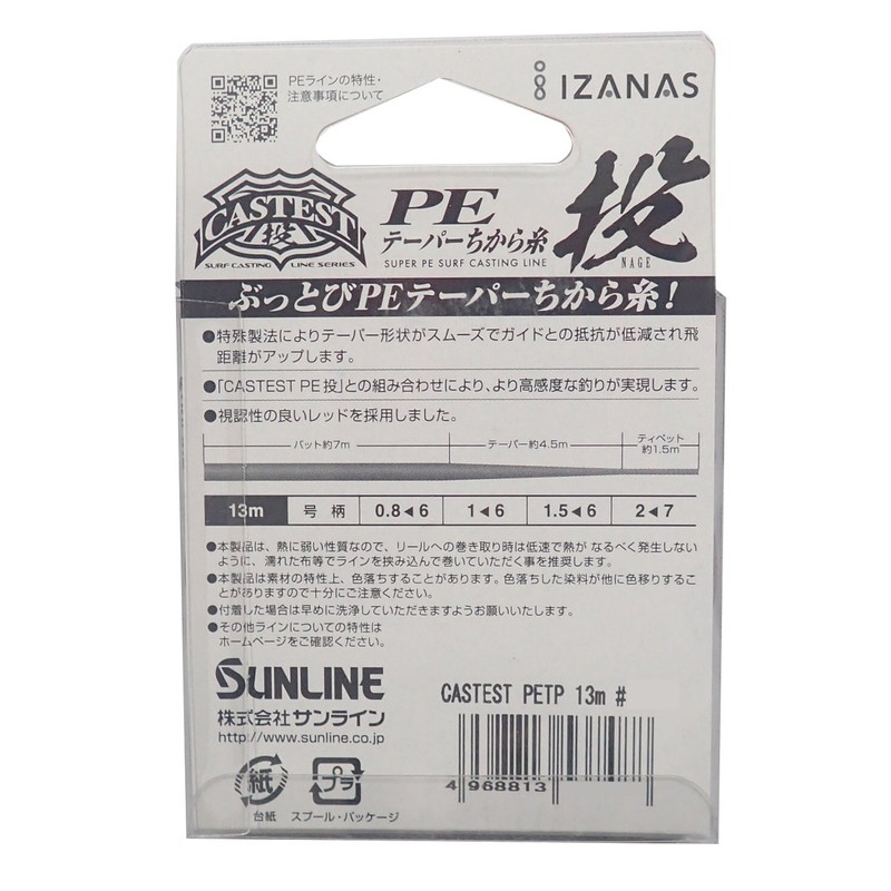 SUNLINE CASTEST PE Taper Thread, 36.8 ft (13 m), 0.8 - 6, Red
