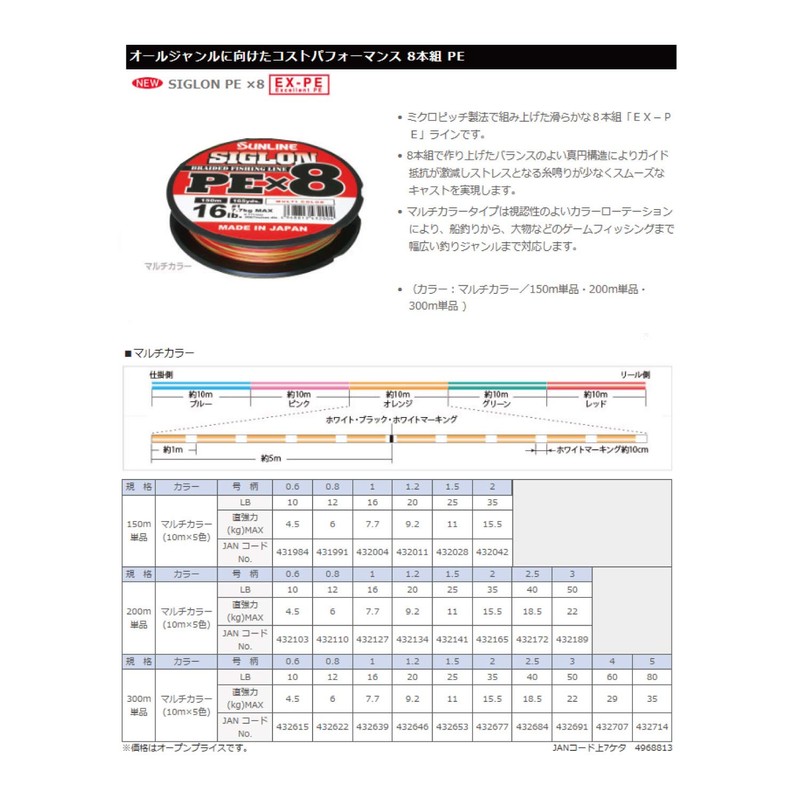 Sunline Century PEx8 Line, 98.4 ft (300m), 5 Colors, No. 4, 60LB J