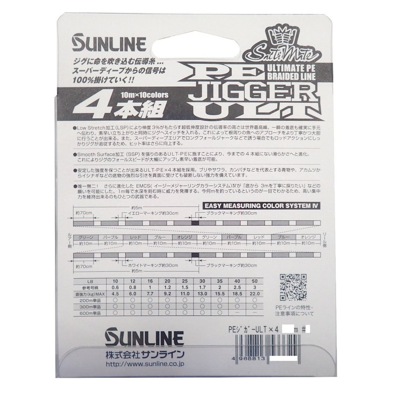 SUNLINE PE Line Saltimate Jigger ULT Set of 4, 984.4 ft (300 m), No. 1.5, 25 lb