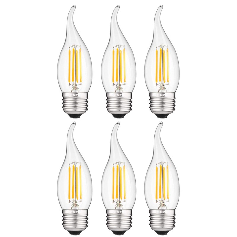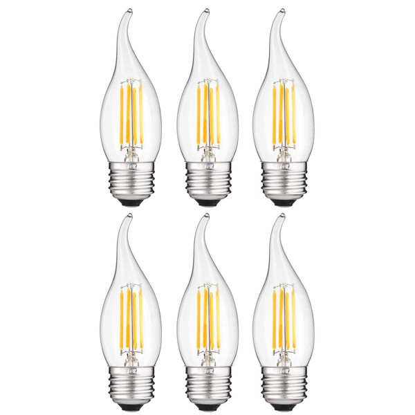 Sunlite LED Filament CA11 Flame Tip Chandelier Light Bulb, 4 Watts (40W Equivalent), Medium E26 Base, Clear Glass, Dimmable, 2700K Soft White, 6 Pack
