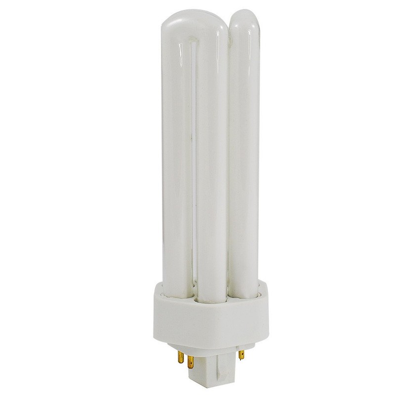 Sunlite compact fluorescent plug-in lamps are used with external electronic ballasts. They are available in a wide range of sizes, wattages, color temperatures and pin configurations. This Sunlite 26-watt compact fluorescent plug-in 4-pin light bulb offers 1800 lumens of light output and a color rendering index of 80. It has an average lamp life of 10000 hours. The 2700K color temperature produces a warm white light similar to standard incandescent bulbs. The PLD26/SP27K fits a GX24Q-3 4-Pin socket.