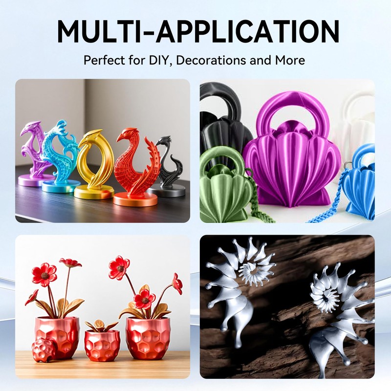 - 【Muticolor Bundles】Available in multiple vivid colors, SUNLU silk PLA plus filament works seamlessly with Bambu Lab 3D printers, perfect for DIY, decorations, seasonal crafts and printing art